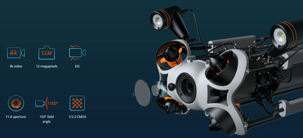 CHASING M2 PRO MAX camera supports up to 4K video/12 megapixels photos, and is equipped with 1/2.3 Sony CMOS and EIS function to clearly capture every detail underwater and truly restore the natural color underwater.